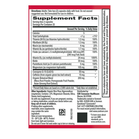 Centrum Energy & Vitality Dietary Supplement, with Coq10, Maca Root and Ginseng - 50 Ct
