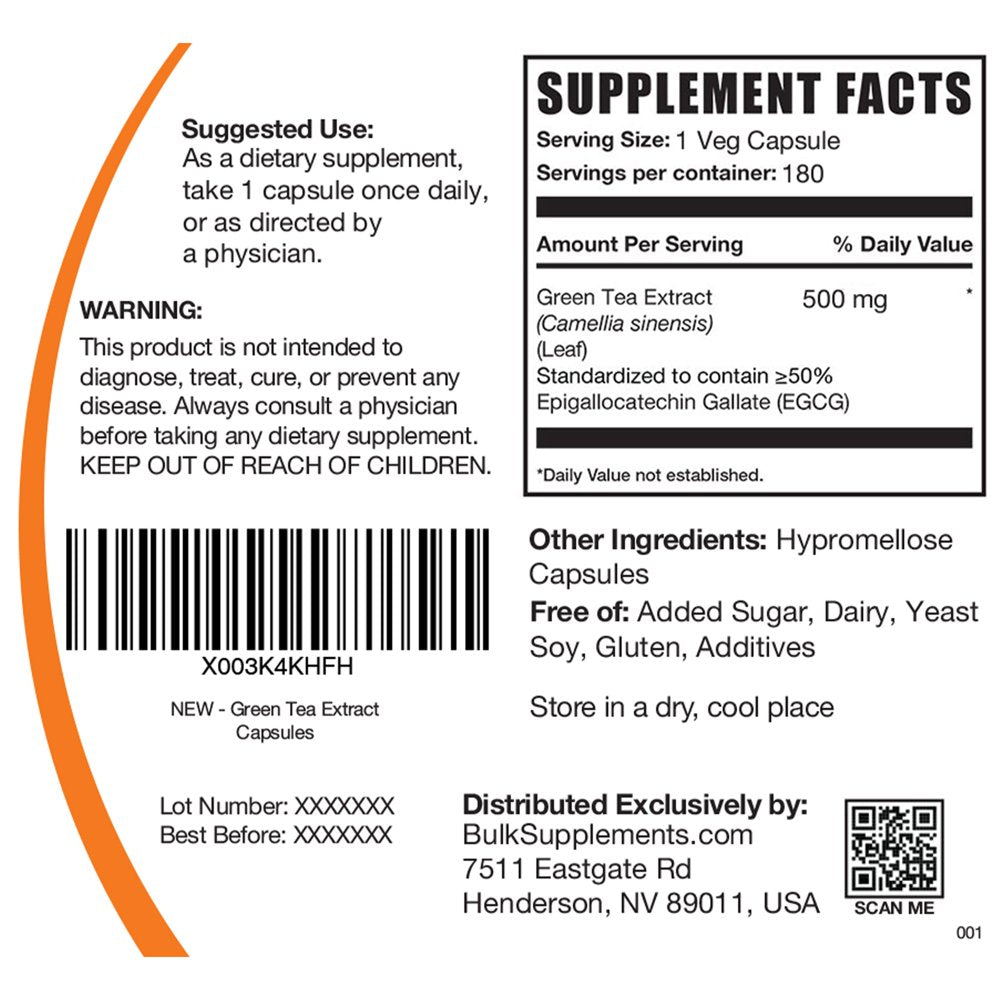 | Product Name | BulkSupplements.com Green Tea Extract (50% EGCG) Capsules, 500mg - Cognitive & Heart Support Supplements (180 Veg Caps - 180 Serv) |