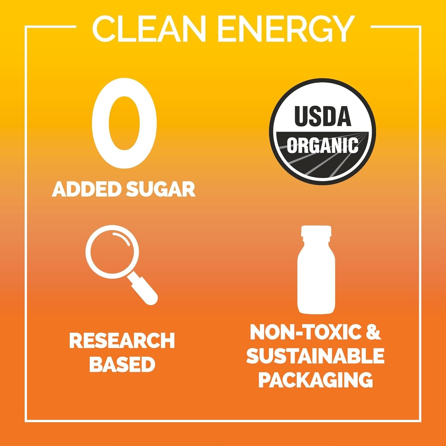 - ORANGE MANGO ORGANIC ENERGY DRINKS, Delicious liquid nutrition energy shot for brain focus, clean caffeine from organic green tea, guayusa tea, and mushroom extracts, USDA Organic ingredients, Non GMO