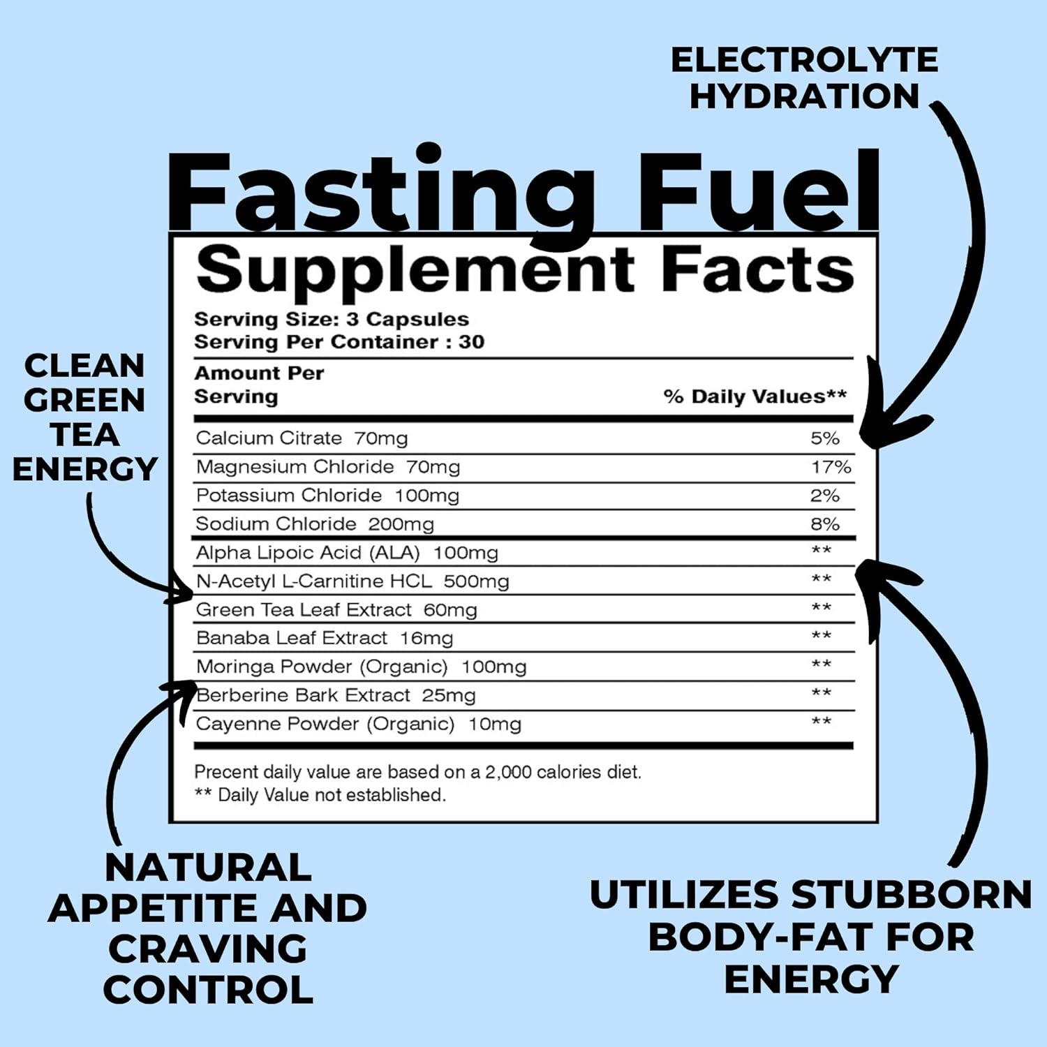 Fasting Fuel 2.0 - Intermittent Fasting Optimization Supplement - Electrolytes, L-Carnitine (ALCAR), ALA, Green Tea Extract - 90 Capsules