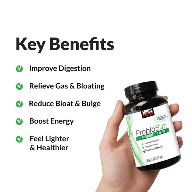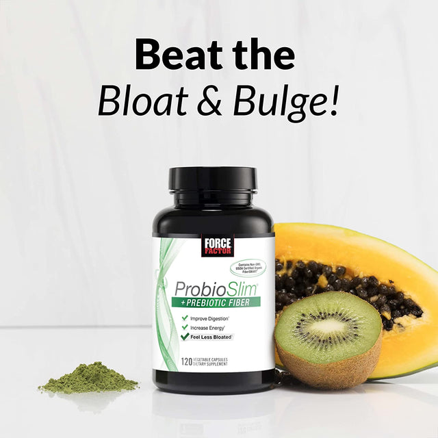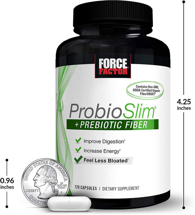 Force Factor Probioslim + Prebiotic Fiber, Metabolism Booster for Women & Men, Digestive Health Support, Green Tea Extract and Psyllium Husk Fiber, 120 Count (Pack of 2)