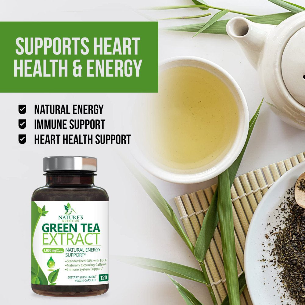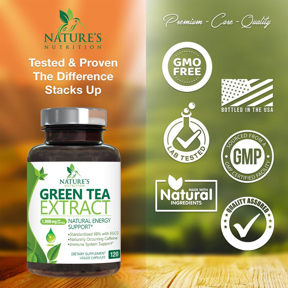 - Premium Green Tea Extract: Nature's Nutrition Premium Green Tea Extract contains a green tea blend (with 98% Egcg, Polyphenols and Antioxidants) for energy and immune support in Men and Women