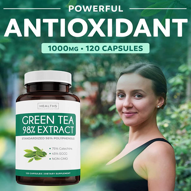 Healths Harmony Green Tea Extract (NON GMO) 120 Capsules with High Potency EGCG for Weight Loss & Metabolism Boost - Natural Diet Pills - Powerful Polyphenol Catechins Antioxidant Supplement - 120 is backordered and will ship as soon as it is back in stock.