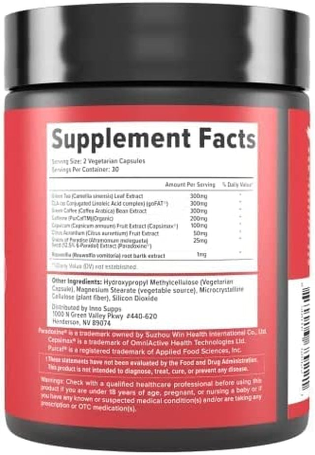 Inno Shred - Day Time Fat Burner | 100Mg Capsimax, Grains of Paradise, Organic Caffeine, Green Tea Extract, Appetite Suppressant, Weight Loss Support (60 Veggie Capsules) | (With Stimulant) is backordered and will ship as soon as it is back in stock.