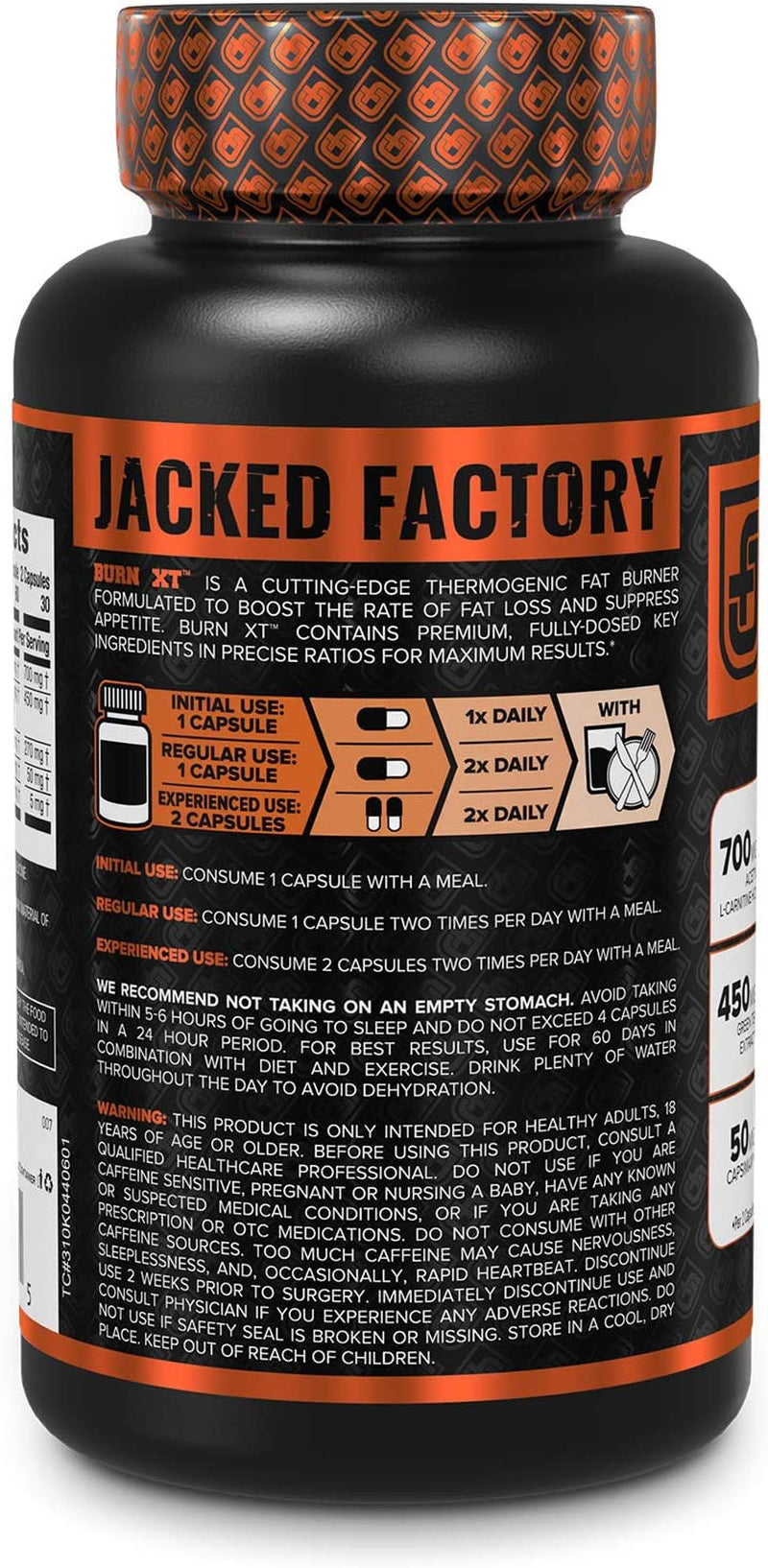 Jacked Factory Burn-Xt for Men & Women - Improve Focus & Increase Energy - Premium Acetyl L-Carnitine, Green Tea Extract, Capsimax Cayenne Pepper, & More - 30 Natural Veggie Pills - 30 Count (Pack Of 1) is backordered and will ship as soon as it is back in stock.