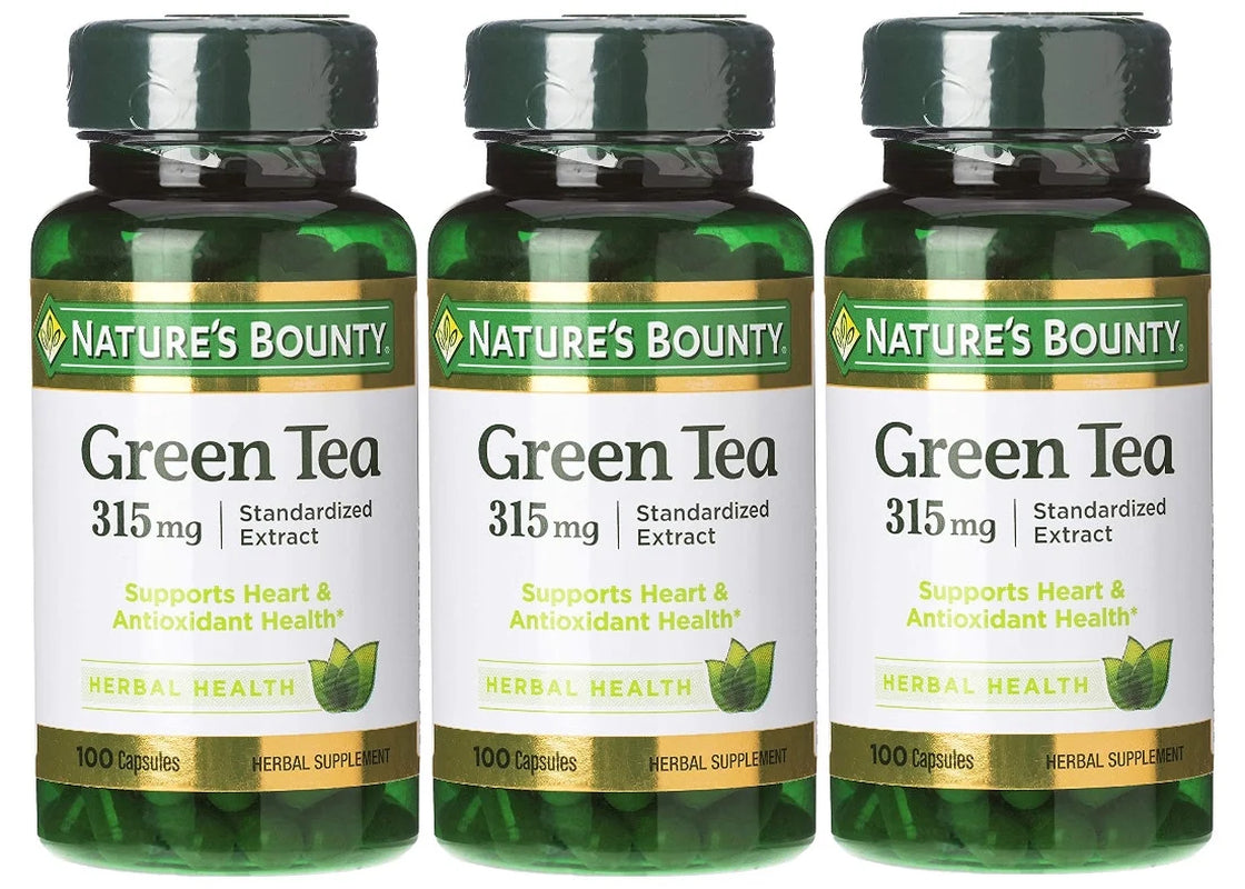 - Nature's Bounty Green Tea Herbal Health Supplements 100 capsules, each capsule contains 315 mg of standard extract