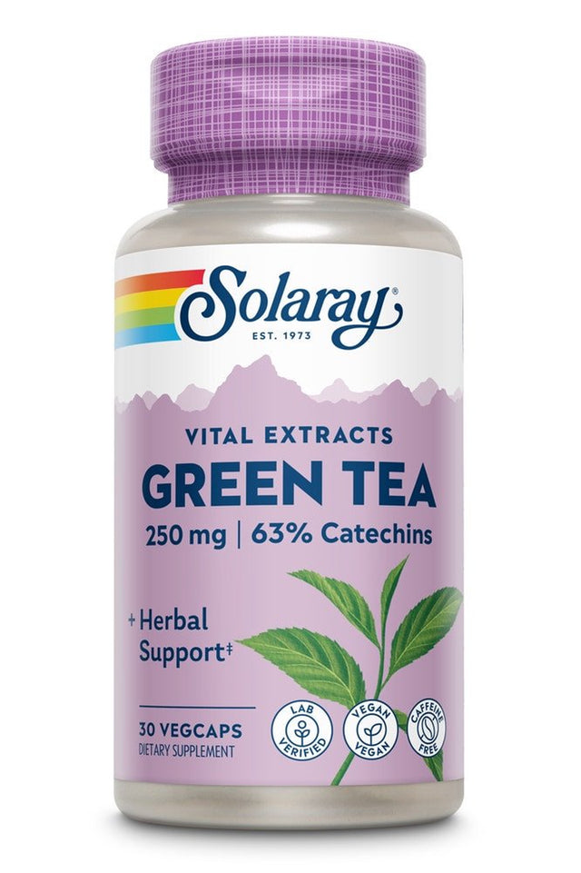 Native to China, green tea has been used for thousands of years, primarily as a beverage. The unique preparation of green tea extract retains many of the chemical characteristics of the fresh leaf, including polyphenols. Solaray Green Tea leaf extract is decaffeinated.