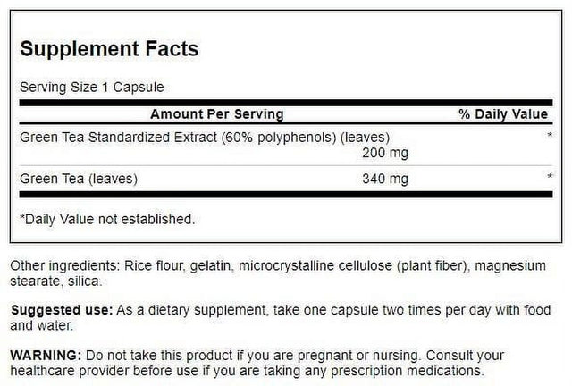Swanson Green Tea Extract (Standardized) 120 Capsules - 1 Pack is backordered and will ship as soon as it is back in stock.