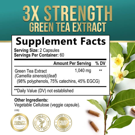 Green Tea Extract Belly Fat Burner Supplement with EGCG Appetite Suppressant 60 Capsules