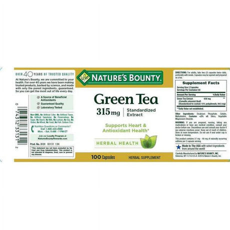 Nature'S Bounty Green Tea Extract Capsules, 315 Mg, 100 Ct (2 Pack)
