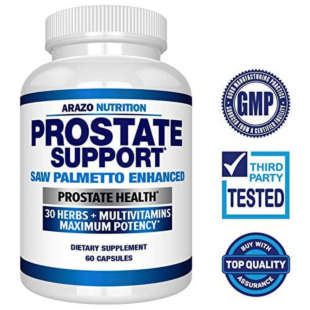 Arazo Nutrition - Prostate Support Supplement Made in USA Stop nightly frustrating bathroom trips; get more sleep & stop waking up every night Increase urine flow rate; effective blend of 30 herbs, vitamins & minerals support urinary function Retain more hair; 30 potent ingredients support aging prostates and reduce hair loss by blocking DHT Reliable; made in a GMP certified facility in America and third party safety tested for purity High standard; trusted for ingredient safety, nutritional value and label accuracy