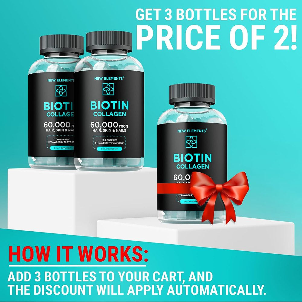 New Elements Biotin Gummies will: Maintain better health Boost beauty inside out Promote faster hair and nail growth Support skin health Why New Elements? We?ve created a gummy to strengthen your Hair, Skin & Nails, from the highest quality vegan Ingredients. * Non-GMO * Vegan Friendly * Gluten-Free with Pectin Base * No Milk, Eggs or Peanuts * No Artificial Colors or Preservatives * No Fish or Shellfish * Lab Tested All of our products are manufactured in the USA by a FDA registered and GMP certified facility.