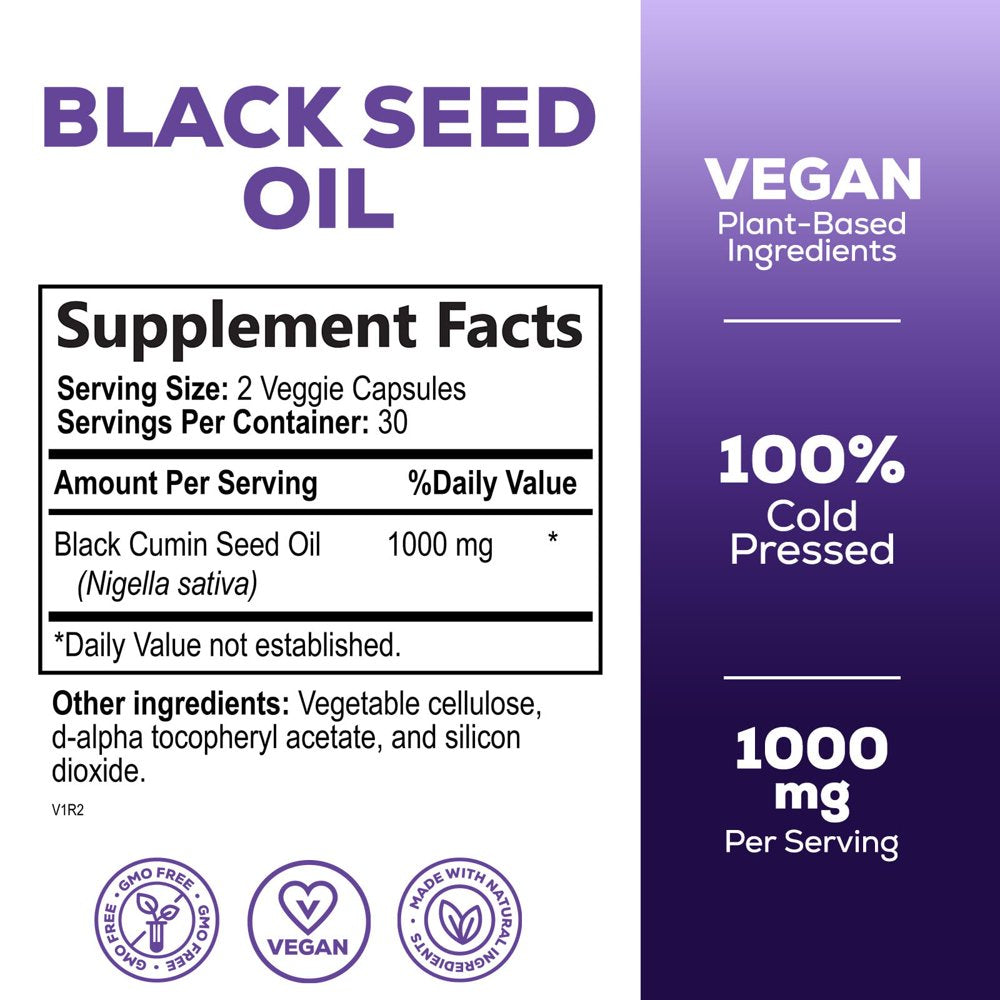 | Product Name | Black Seed Oil - 100% Cold Pressed Blackseed Oil, Vegan 1000mg - Extra Strength Nigella Sativa for Joint, Hair, Skin & Immune Support, Pure Black Cumin Seed Oil Antioxidant, Non-GMO - 60 Capsules |