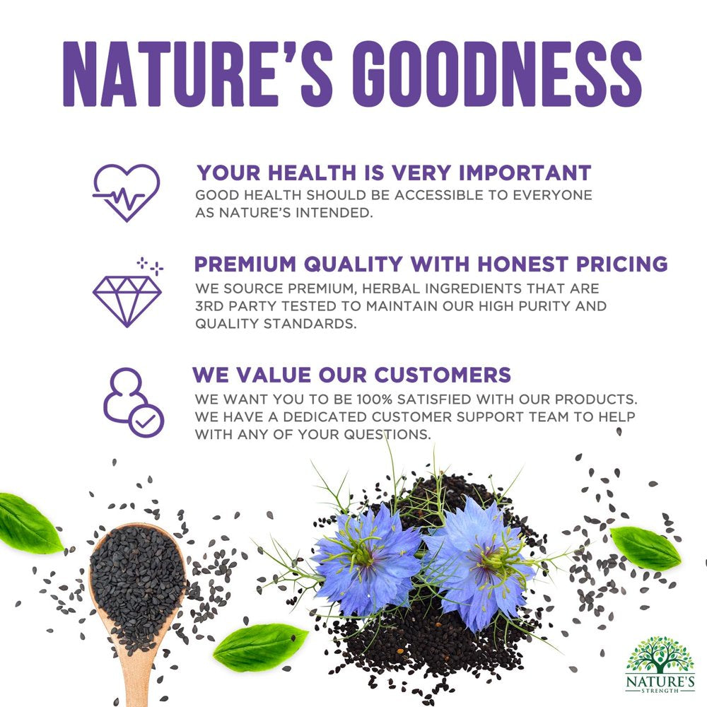 - Black Seed Oil: Nature's Strength Vegan 100 percent cold pressed blackseedoil capsule pills with 1000mg pure black cumin seeds liquid extract nigella sativa best blackseed oul capsules for hair skin joints immune health support and gummies herbs amazing antioxidant 2000mg 500mg 2 3 6 9 vitamin aceite de semilla negra comino negro sea non gmo premium high press softgels supplement