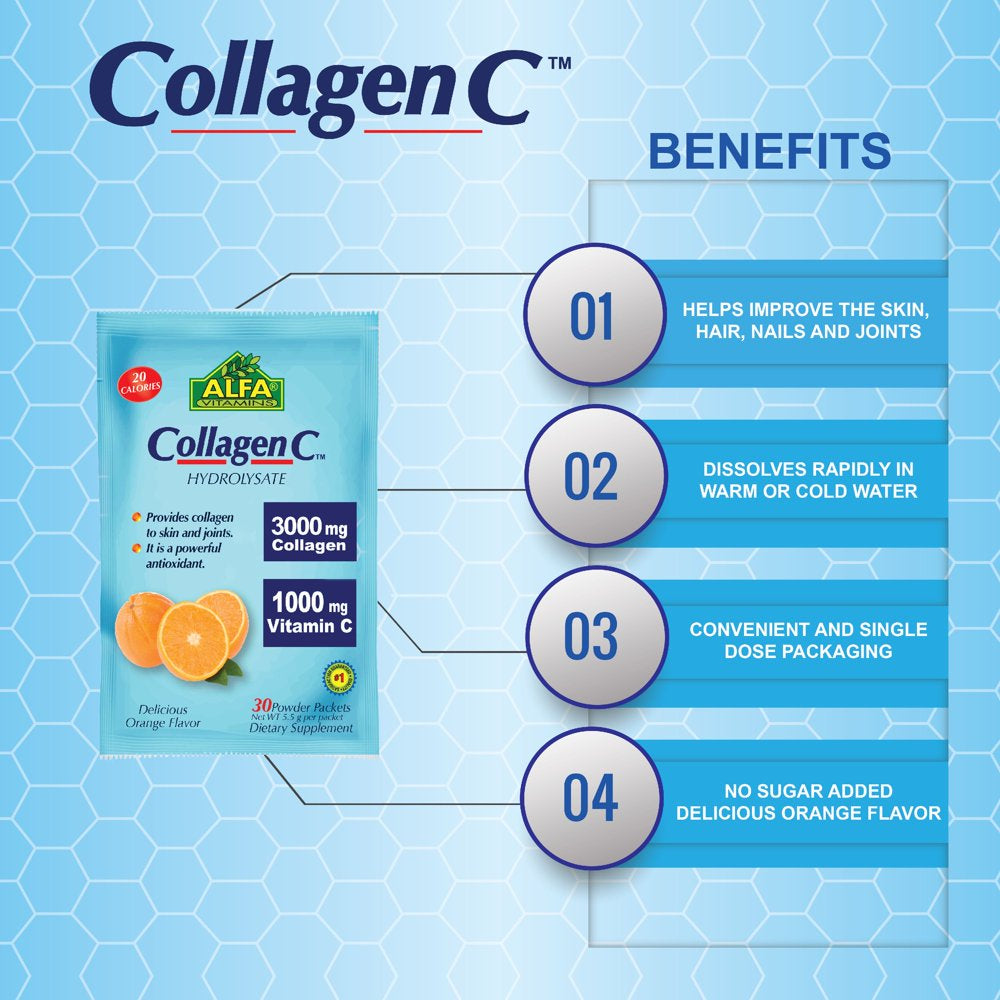 Collagen C® Hydrolysate with Vitamin C - Powder Supplement - Skin, Hair, Nails Support - 30 Pack