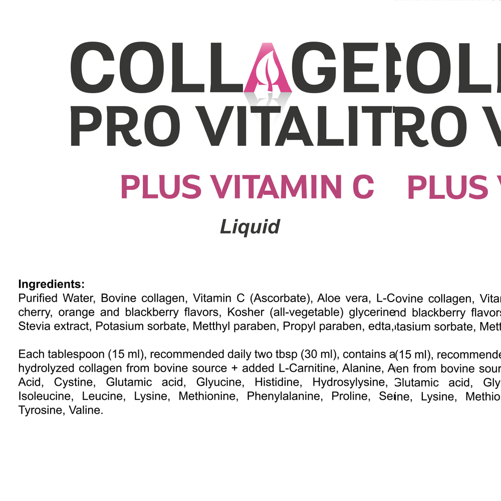 Purified Water; Bovine Collagen; Vitamin C; Aloe Vera; L-Carnitine; Natural cherry; Orange and blackberry flavors; Kosher; Xanthan gum; Stevia extract; Potasium sorbate; Metthyl paraben; Edta/div>