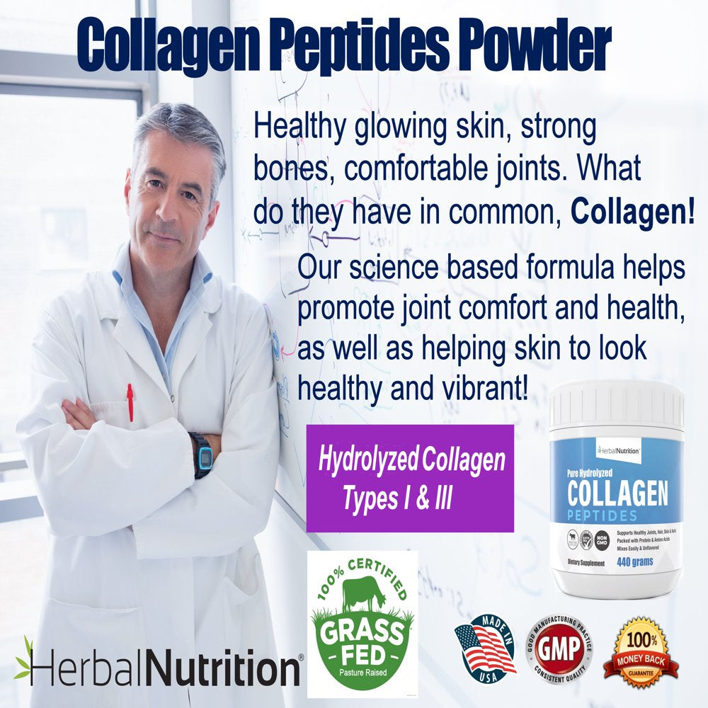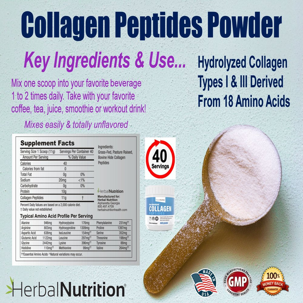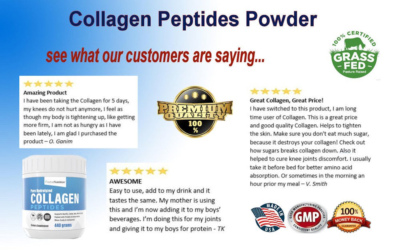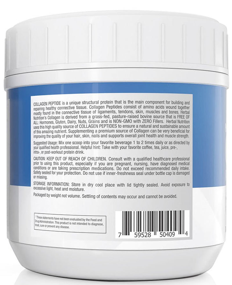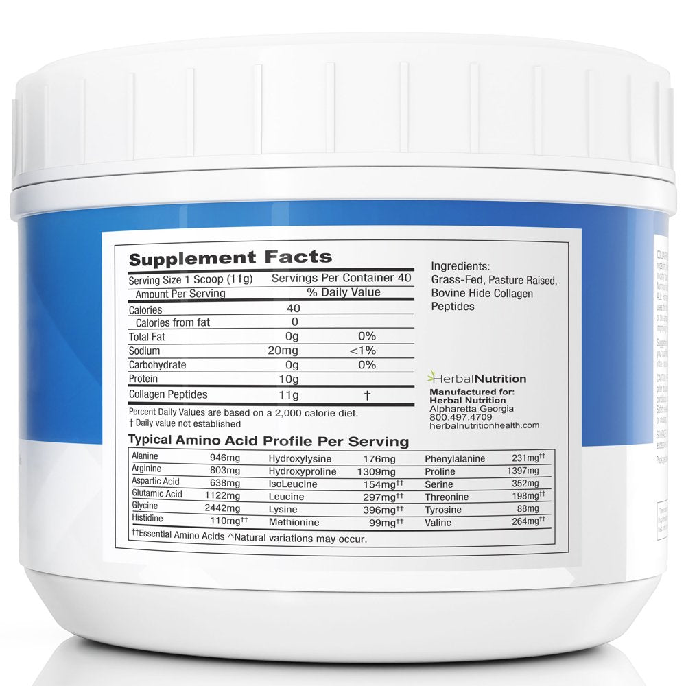 Herbal Nutrition ensures our hydrolyzed collagen peptides are sourced from grass-fed, pasture-raised, Grade A bovine, and certified hormone-free and 100% non-GMO because we know grass fed cows are happier and healthier. Free of harmful fillers and additives, our collagen peptides are the best way to counteract the effects of aging, increase flexibility, and rebuild and repair your health. You can rest assured knowing there are never any harmful fillers or additives, just all-natural ingredients.