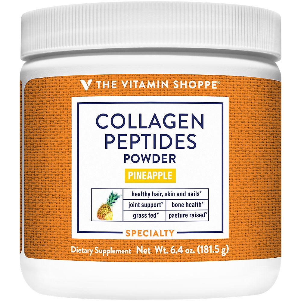 Ever wonder what gives your hair, skin, and nails their natural glow? Type I and III collagen! Collagen is the most abundant protein found throughout the body, supporting the strength and elasticity of our hair, skin, nails, bones, muscles, and tendons. Pineapple flavored Collagen Peptides from The Vitamin Shoppe brand is an easy and delicious way to incorporate more collagen in your diet. Frequently Asked Questions How should I ingest The Vitamin Shoppe brand Collagen Peptides Powder? Mix 1 scoop of powder with a hot or cold beverage of your choice and enjoy (preferably on an empty stomach)!
