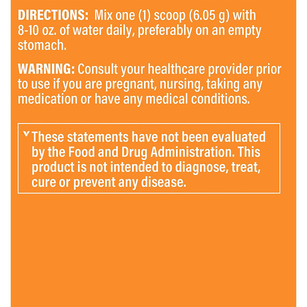 • Directions: Mix one (1) scoop (6.05 g) with 8-10 oz. of water daily, preferably on an empty stomach.