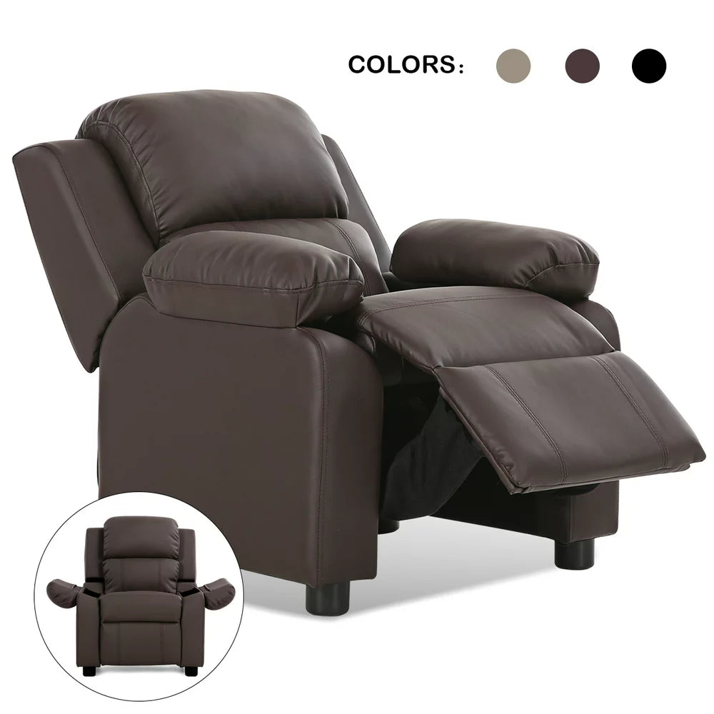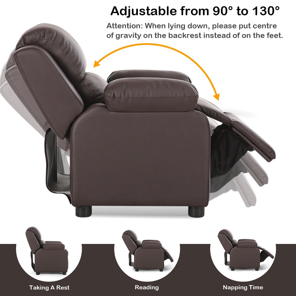 Deluxe Padded Kids Sofa Armchair Recliner Headrest Children W/ Storage Arm Brown