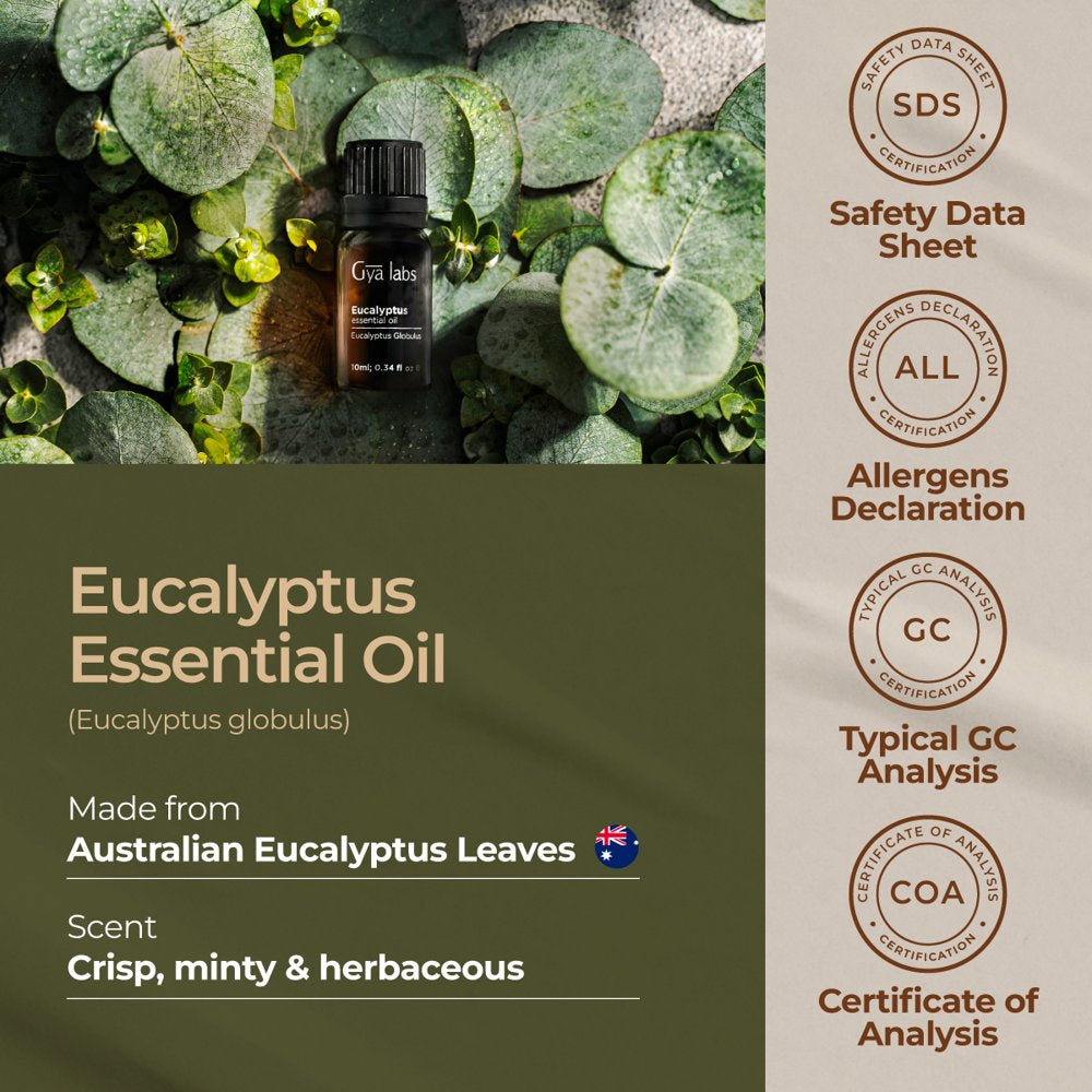 Gya Labs Australian Eucalyptus Essential Oil (0.34 Fl Oz) - Eucalyptus Oil Essential Oils for Diffuser, Skin, Humidifier, Sinus & Hair