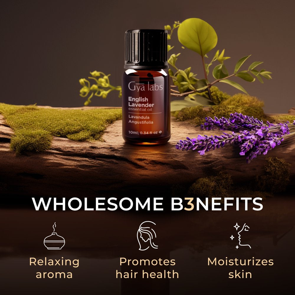 Gya Labs English Lavender Oil Essential Oil for Diffuser- Lavender Oil Essential Oils for Skin - Lavender Essential Oil for Hair (0.34 Fl Oz)