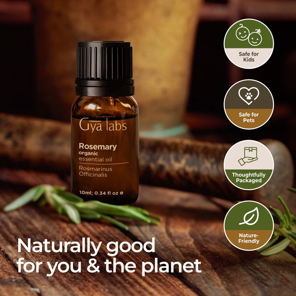 Gya Labs Organic Rosemary Oil for Hair & Scalp - Organic Rosemary Essential Oil for Skin & Diffuser - Steam Distilled Rosemary Oil for Hair Organic (0.34 Fl Oz)