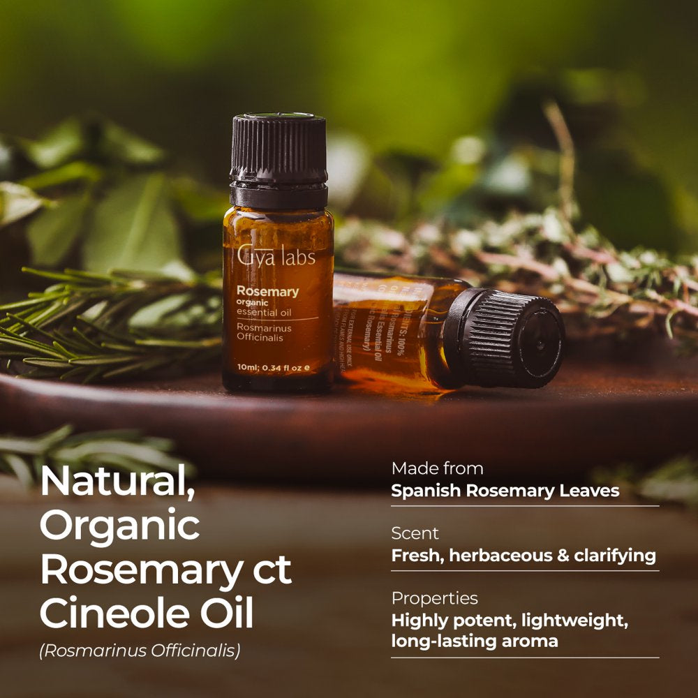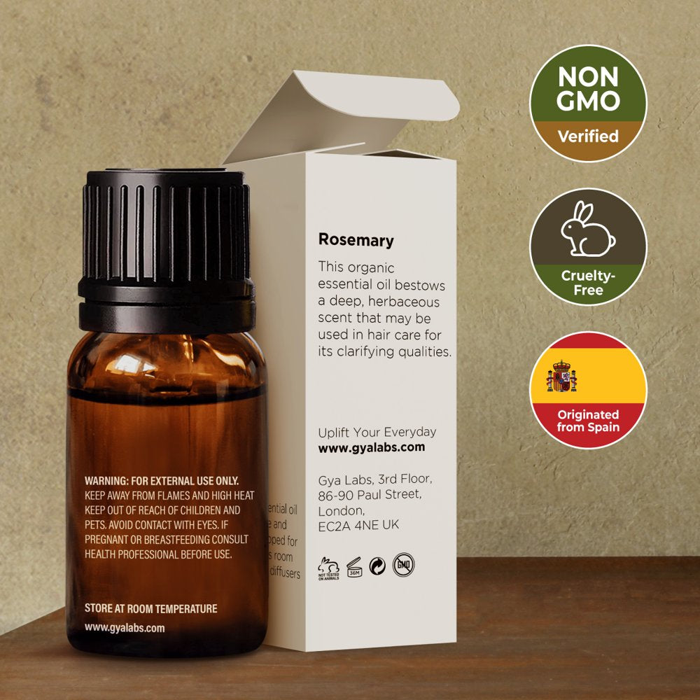 - A TRUSTED NAME IN AROMATHERAPY OILS. Gya Labs' Organic Rosemary Essential Oil is made from Spanish rosemary leaves. The result is a soothing, camphorous scent that is often used in personal self-care and aromatherapy.
