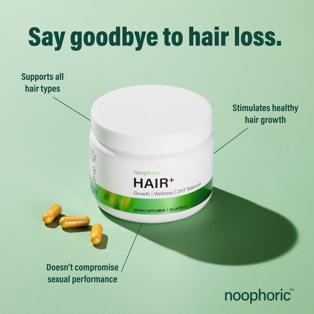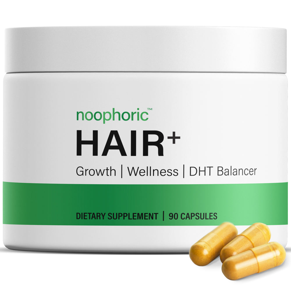 Noophoric Hair+ is a natural hair growth supplement formulated to target the root causes of hair loss and hair thinning. Key ingredients like Saw Palmetto, Nettle, Turmeric, vitamins, and minerals work to address hair loss caused by nutrient deficiencies, aging, and the environment. In addition, these hair growth vitamins work as a DHT blocker supplement to stop hair loss caused by hormonal imbalance such as peri menopause, postmenopause, and postpartum. Unlike other hair growth products, this blend of 21 natural ingredients will not cause issues with loss of drive. Carefully selected vitamins, minerals and micronutrients support healthy hair skin and nails. Created for both men and women and designed to be used alongside other hair care products such as hair growth serum, and hair growth shampoo and conditioner. Add Noophoric Hair+ to your daily hair care routine and start seeing fuller, thicker hair growth. *These statements have not been evaluated by the Food and Drug Administration. This product is not intended to diagnose, treat, cure or prevent any disease.