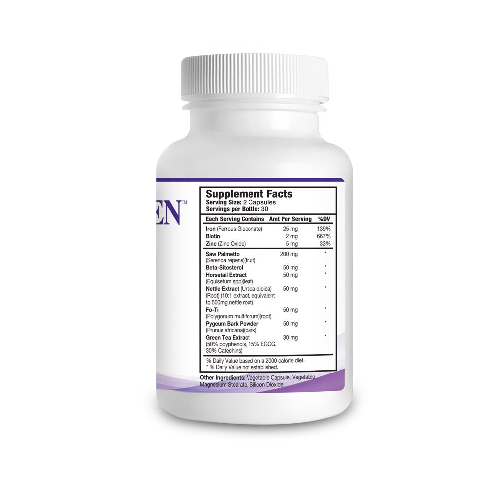 Biotin, Zinc, Iron, Saw Palmetto, Beta-Sitosterol, Horsetail Extract, Fo-tu, Pygeum Bark Powder, Green Tea Extract. Other ingredients: Vegatable Capsule, Vegtable Magnesium Stearate, Silicon Dioxide./div>