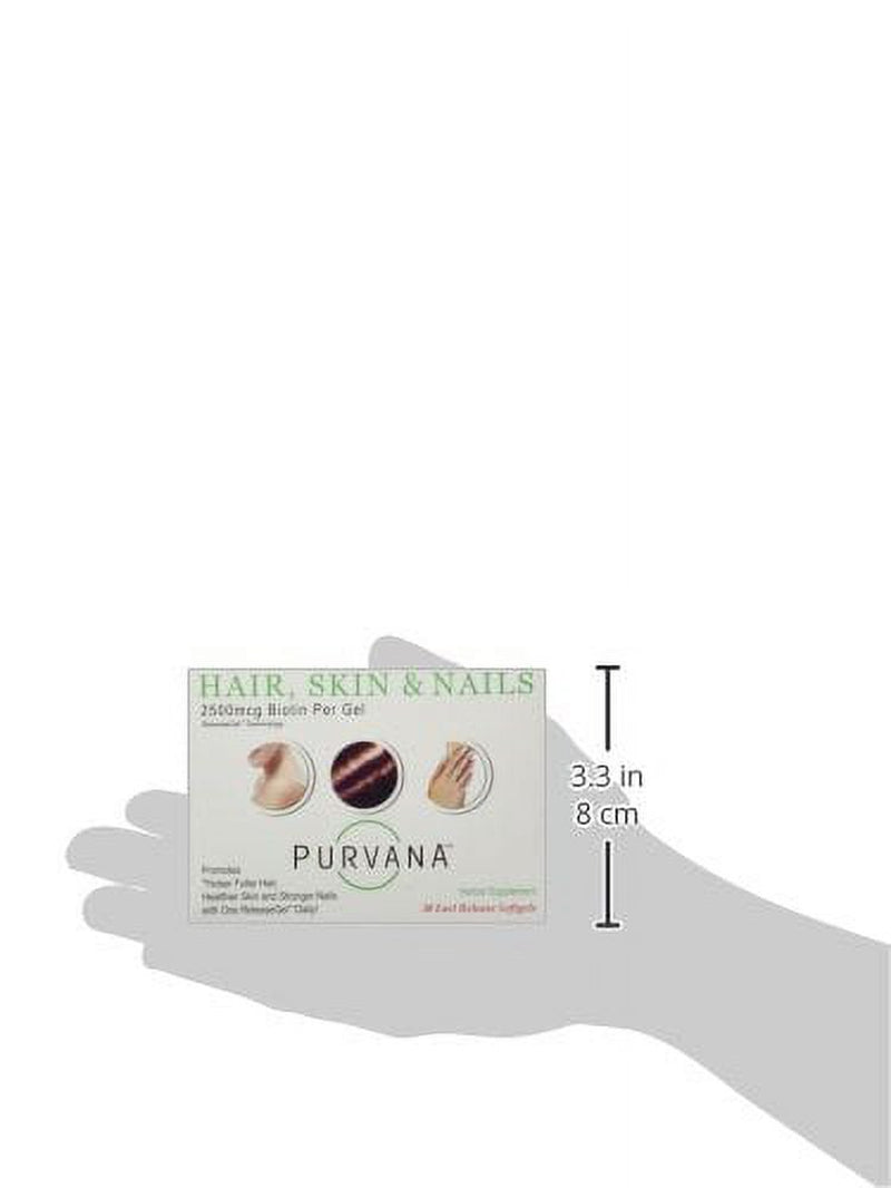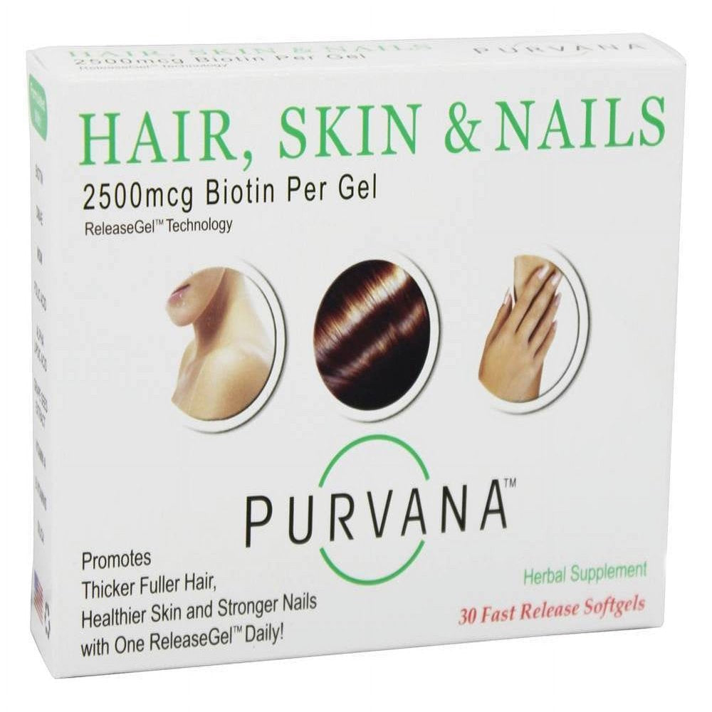 Heaven Sent Purvana Wellgenix Hair, Skin & Nails 2500 mcg. Fast Release Softgels Heaven Sent Purvana Wellgenix Hair, Skin & Nails is a ground breaking herbal supplement designed to promote thicker fuller hair, healthier skin, and stronger nails with ONE release gel vitamin. Heaven Sent Purvana Wellgenix Hair, Skin & Nails supplies 2500 mcg. of biotin per fast release softgel.