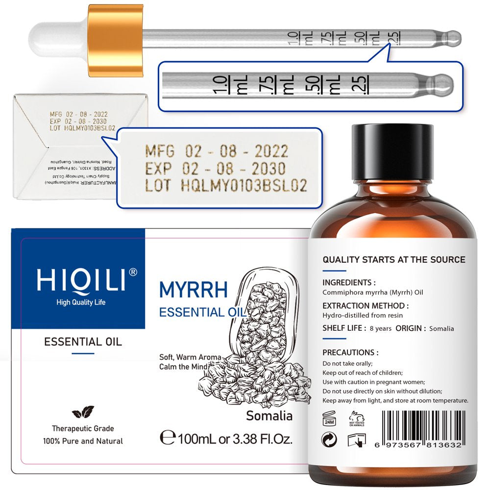 HIQILI Myrrh Oil, Pure Essential Oil for Diffuser, Massage, Bath, Skin and Hair Care - 100Ml