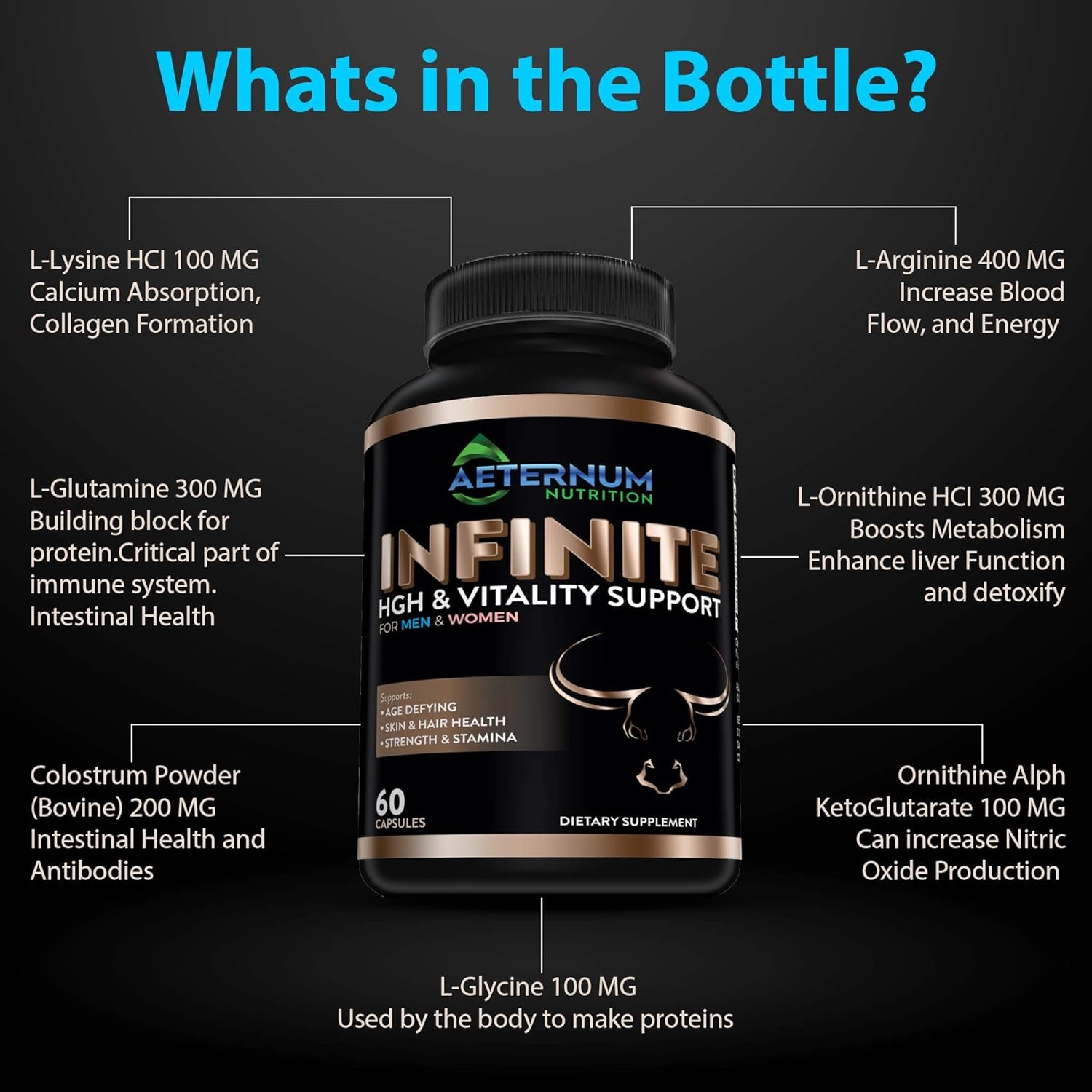 Infinite - HGH - Testosterone - Vitality Supplement-Includes Argnine-Glutamine, and More! Supports Strength, Stamina, Skin & Hair Health, Muscle Growth. for Men and Women 60 Capsules per Bottle.