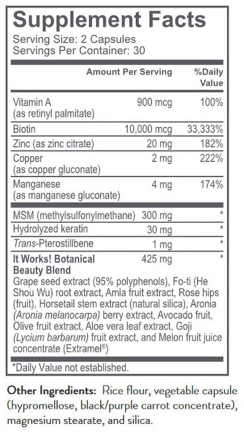 It Works! Hair Skin and Nails Beautifying Supplement 60 Capsules It Works