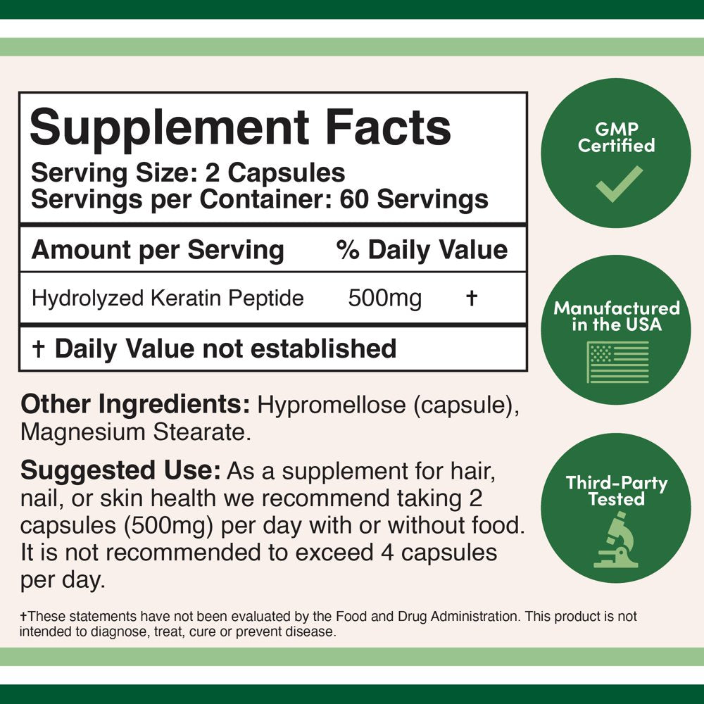Keratin Hair Growth Vitamin 500Mg per Serving, 120 Pills Keratin Hair Treatment for Men and Women Vital Protein for Hair, Skin, and Nails by Double Wood Supplements