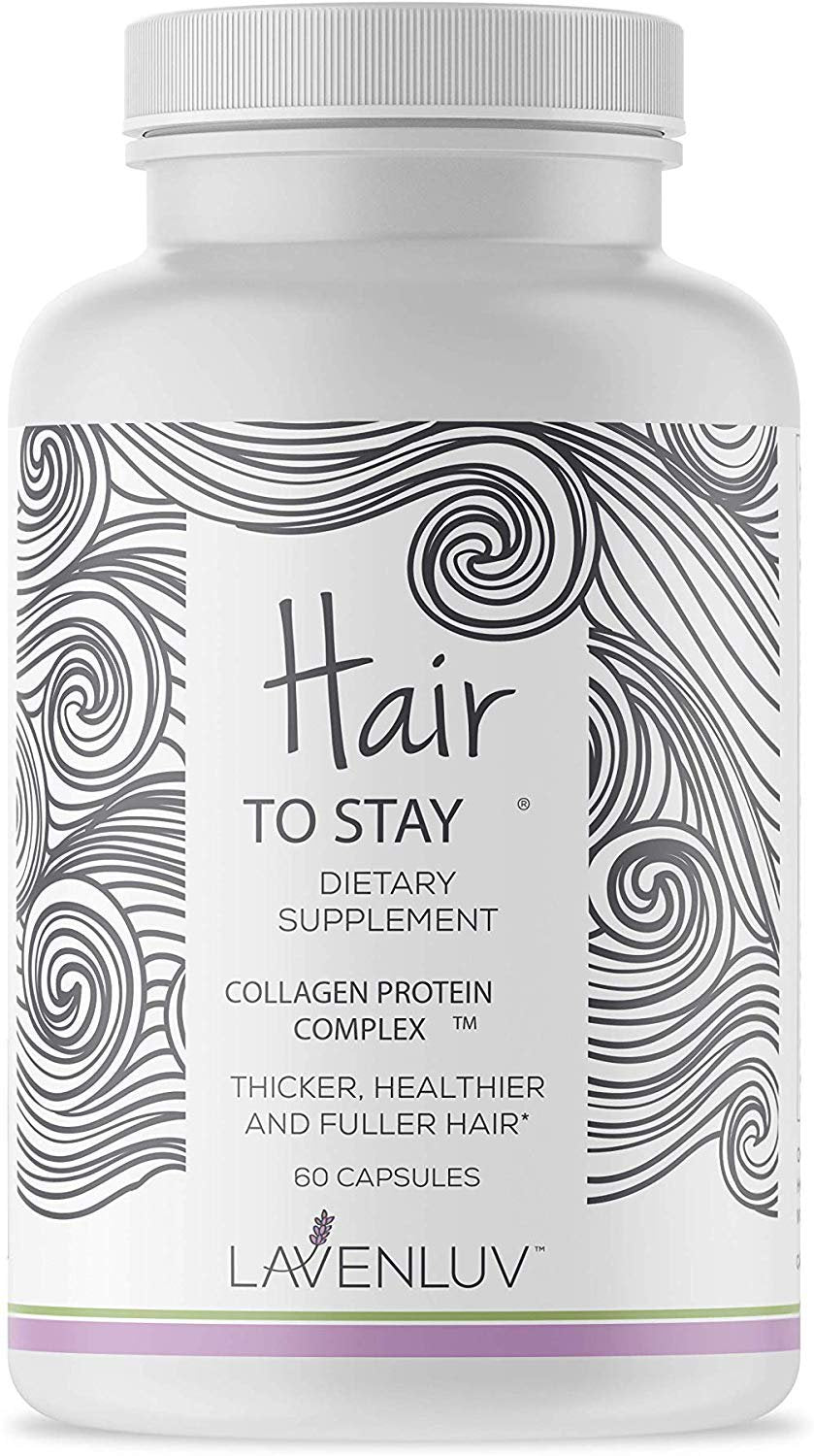 Lavenluv Hair to Stay Kosher Collagen Protein, Biotin and Vitamins Complex for Thicker, Healthier and Fuller Hair - Prevents Hair Loss, Treats Thinning, Dry and Brittle Hair - 60 Capsules