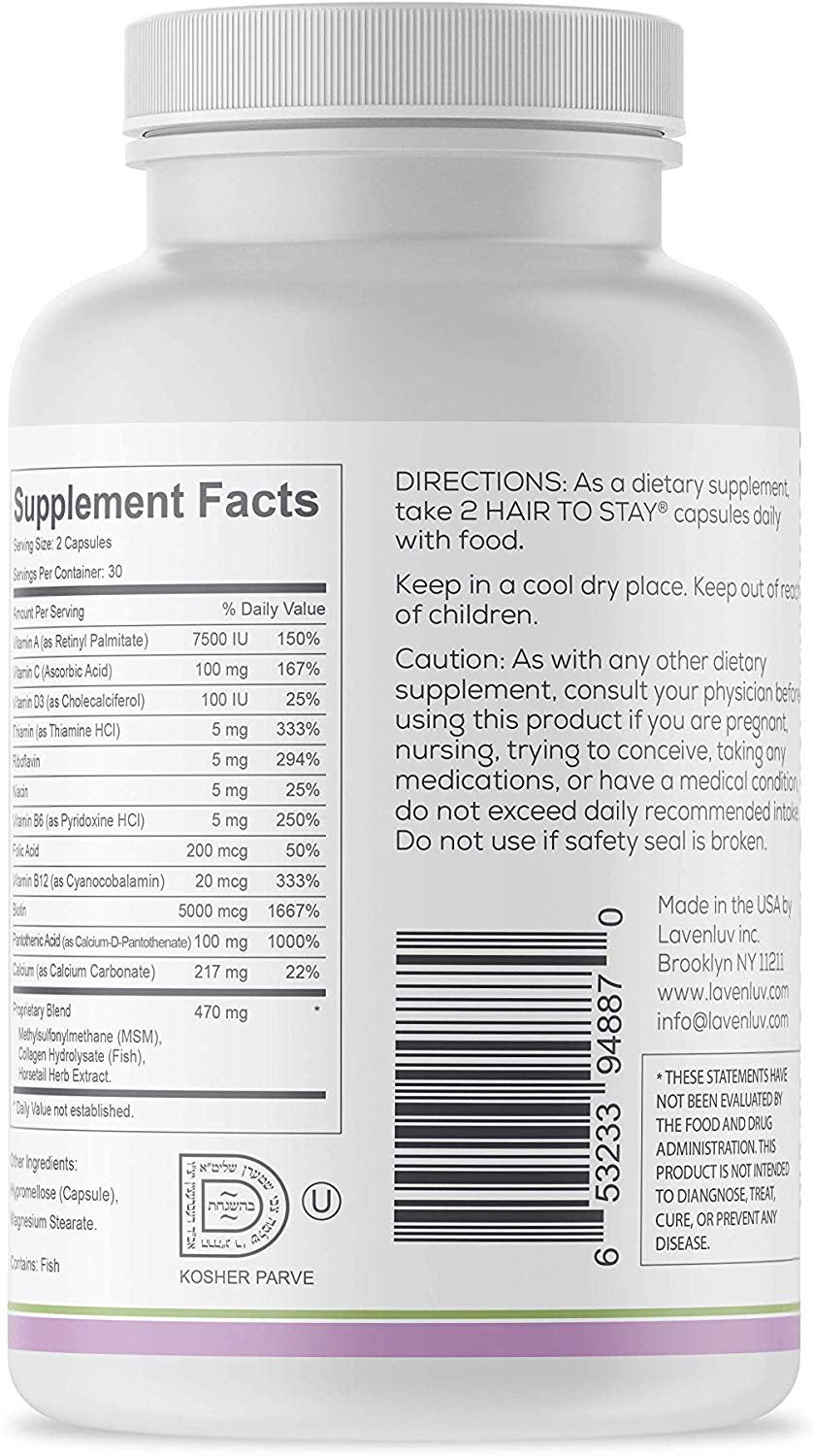 Lavenluv Hair to Stay Kosher Collagen Protein, Biotin and Vitamins Complex for Thicker, Healthier and Fuller Hair - Prevents Hair Loss, Treats Thinning, Dry and Brittle Hair - 60 Capsules is backordered and will ship as soon as it is back in stock.