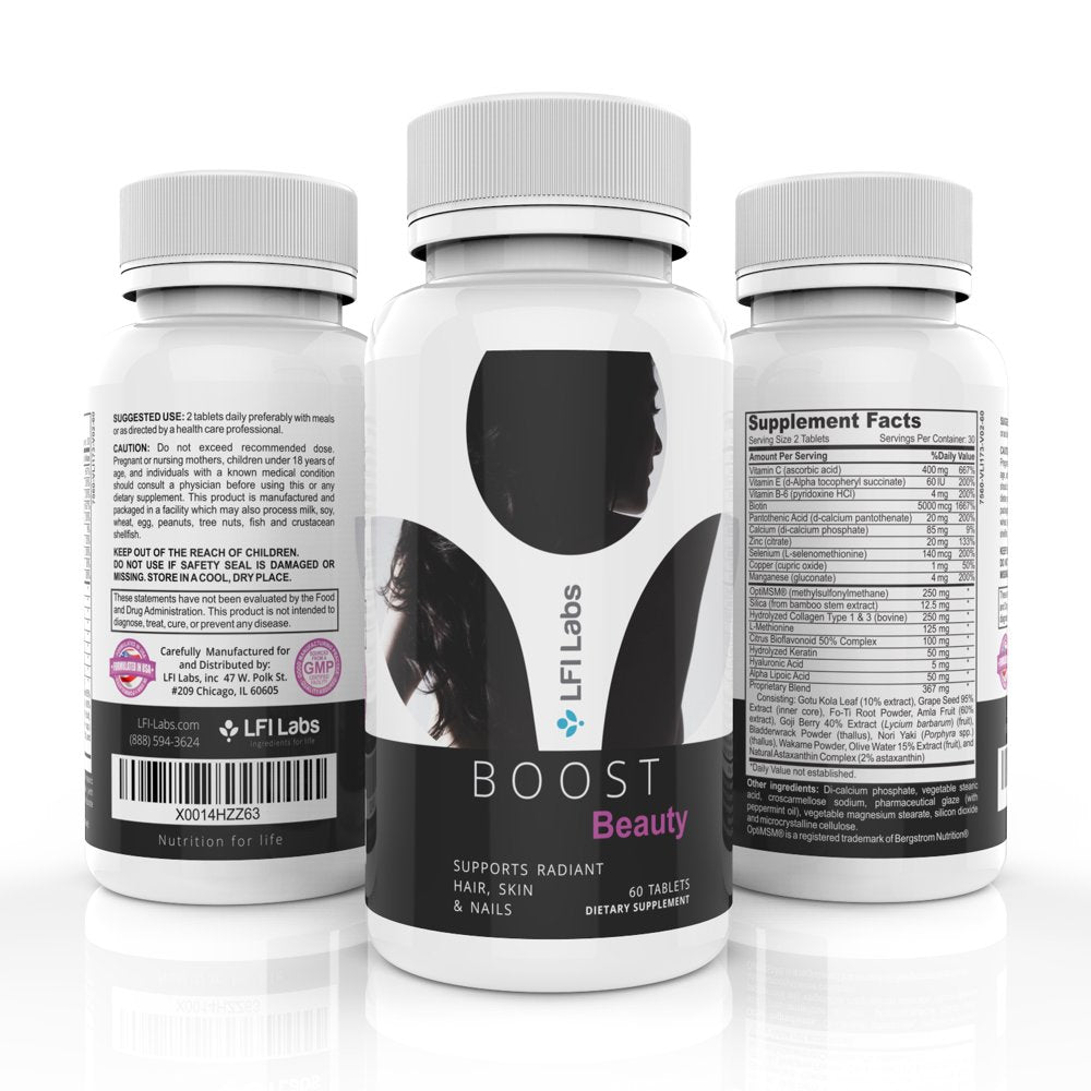 LFI Boost Beauty - Dermatologist Recommended - 28 Powerful & Effective Clinically Studied Ingredients for Beauty Enhancement; Hair, Skin & Nails