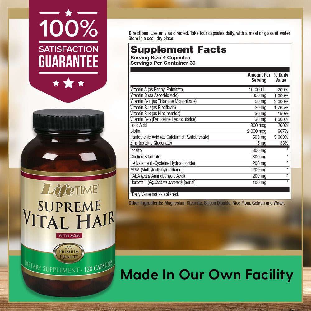 You comb it, curl it, wash it and dry it. You pamper it. You were born with it. If only that same hair that was yours could stay as thick and healthy as it once was for your entire life. Lifetime is proud to introduce our Supreme Vital Hair with MSM. Made to support healthy hair, skin, and nails, Supreme Vital Hair could be the vitamin supplement youve been looking for.