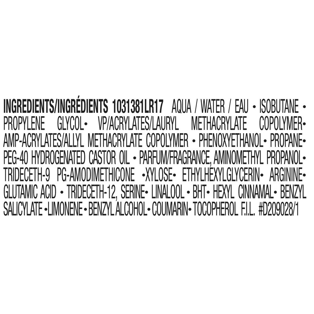 Alcohol Denat., Hydrofluorocarbon 152a, Dimethyl Ether, Aqua/Water/Eau, Va/Crotonates/Vinyl Neodecanoate Copolymer, Aminomethyl Propanol, Parfum/ Fragrance, Sodium Saccharin, Xylose, Benzyl Alcohol, Arginine, Serine, Magnesium Acetate, Glutamic Acid. F.I.L. # D162961/3/div>