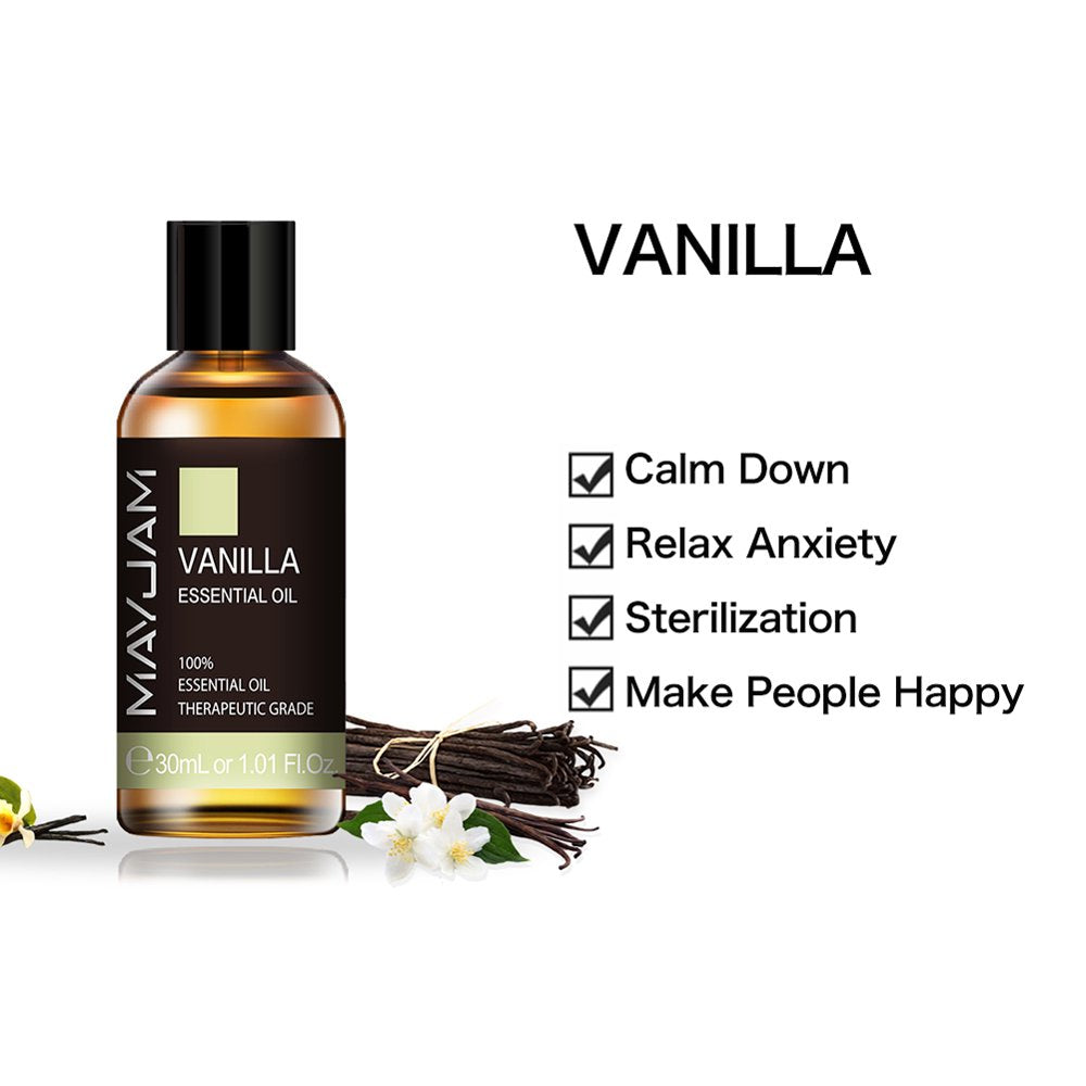 MAYJAM 30ML Vanilla Essential Oils for Aromatherapy & Diffuser, Hair & Skin Care, Massage, DIY Soap Candle Making, Fragrant and Long Lasting Vanilla Oil Perfume
