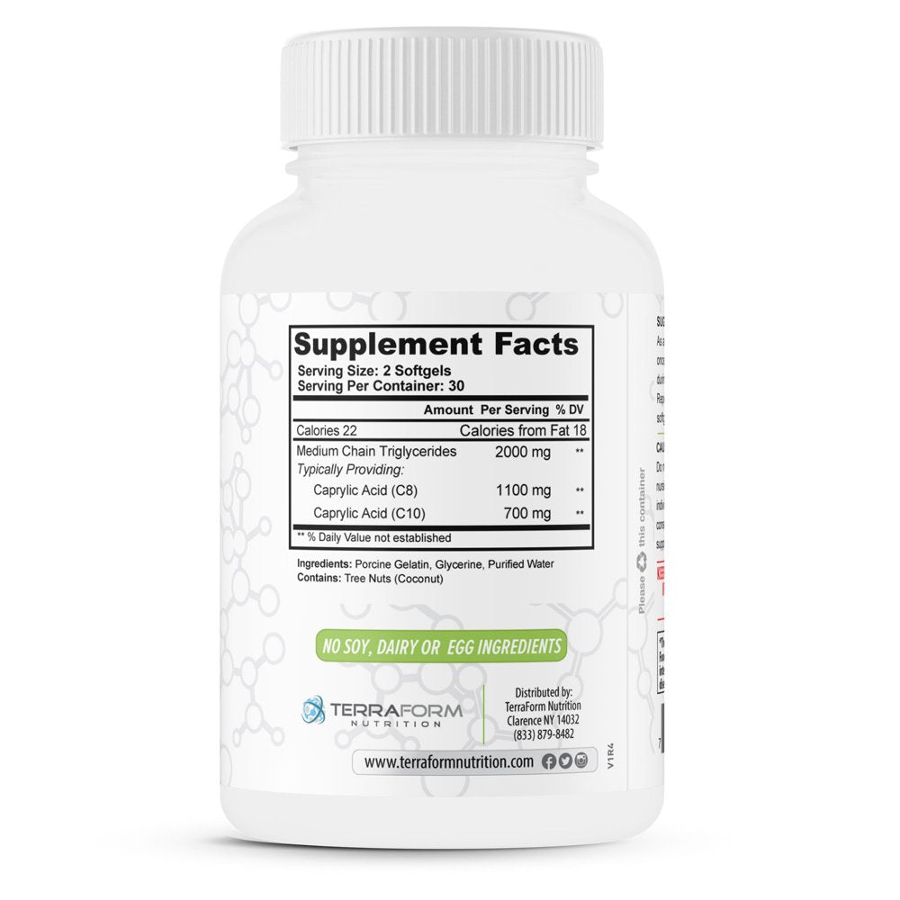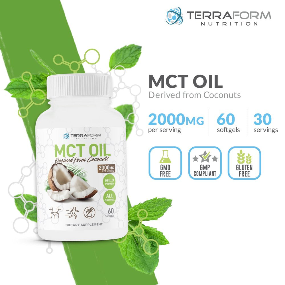 - MCT oil derived from coconuts. Easy to swallow, 1000mg softgel capsules. This supplement for both men and women of all ages (18+). Just 2 capsules a day is all it takes. This supplement has NO GMOS, gluten, eggs, dairy or soy ingredients in it.