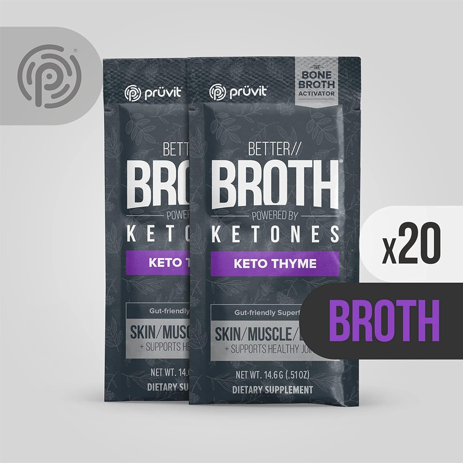 Pruvit Better Broth Keto Thyme for Joint Support, Muscle Recovery and for Improving the Appearance of Skin and Hair - 20 Count