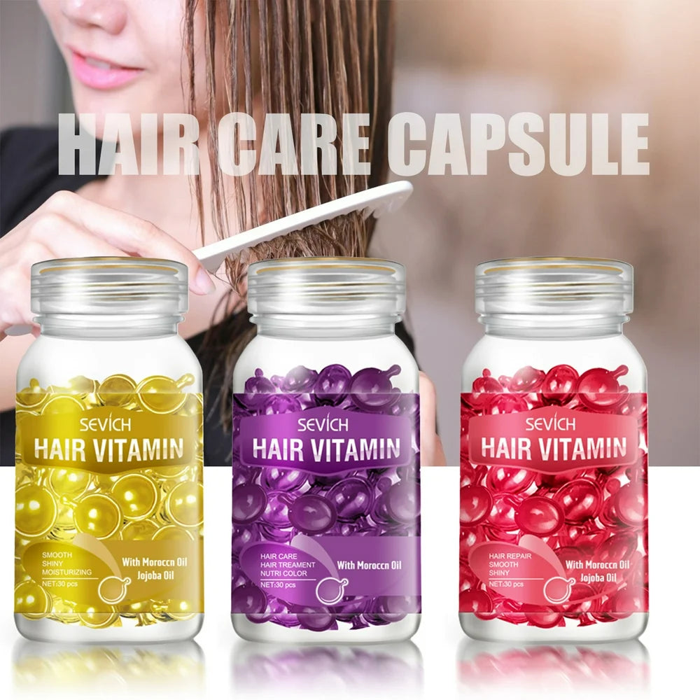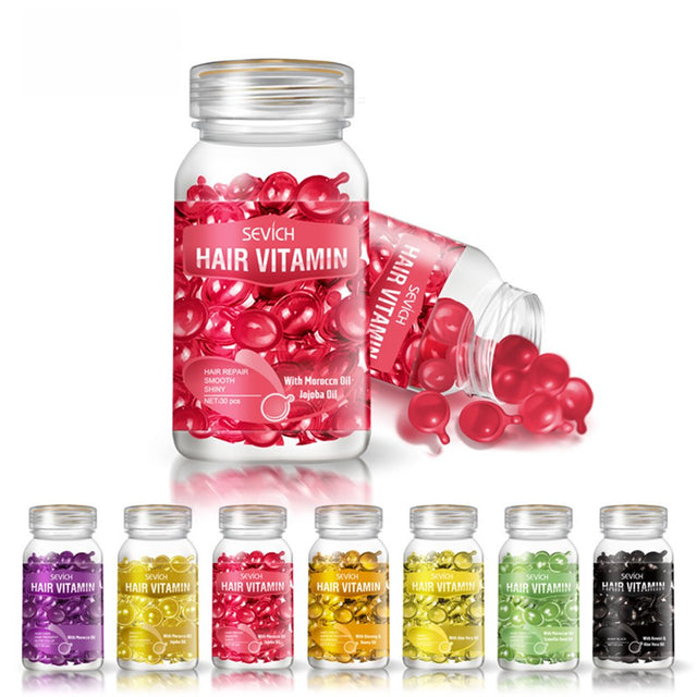 Qinghai 30Pcs/Set Repair Hair Vitamin Moisturizing Hairs Natural Smooth Silky Capsule Keratin Complex Hair Care Oil for Female