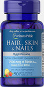 Buy Quick Dissolve Hair Skin Nails 90 Tablets & other Hair, Skin and Nails Supplements. Puritan's Pride Quick Dissolve Hair, Skin & Nails formula contains 2500 mcg of Biotin and also contains 60 mg of Vitamin C per serving to help support skin health and naturally beautiful hair.*