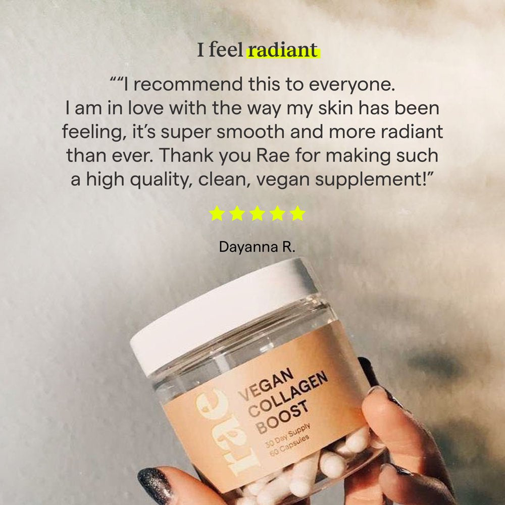Rae Wellness Vegan Collagen Boost Supplement with Vitamin C, Support Hair, Skin & Nails, 60Ct