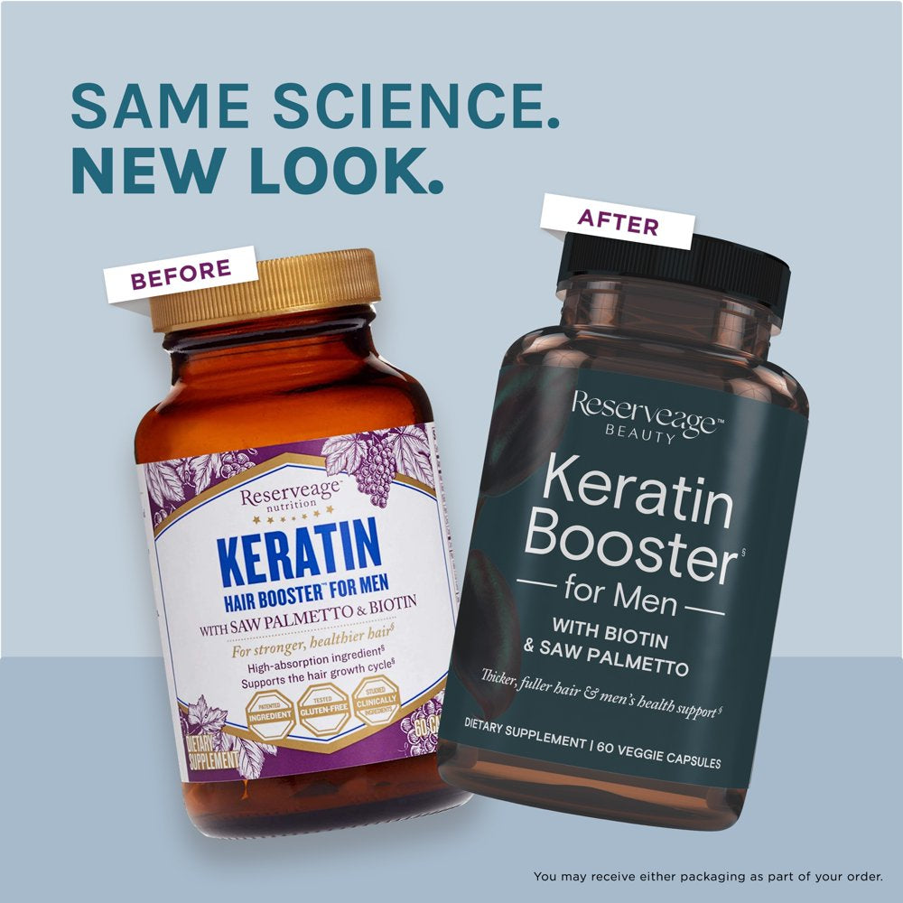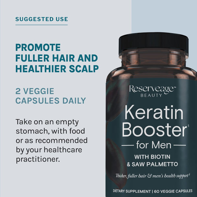 Reserveage, Keratin Hair Booster for Men, Hair Supplement, Supports Healthy Growth and Thickness with Biotin, 60 Capsules (30 Servings)