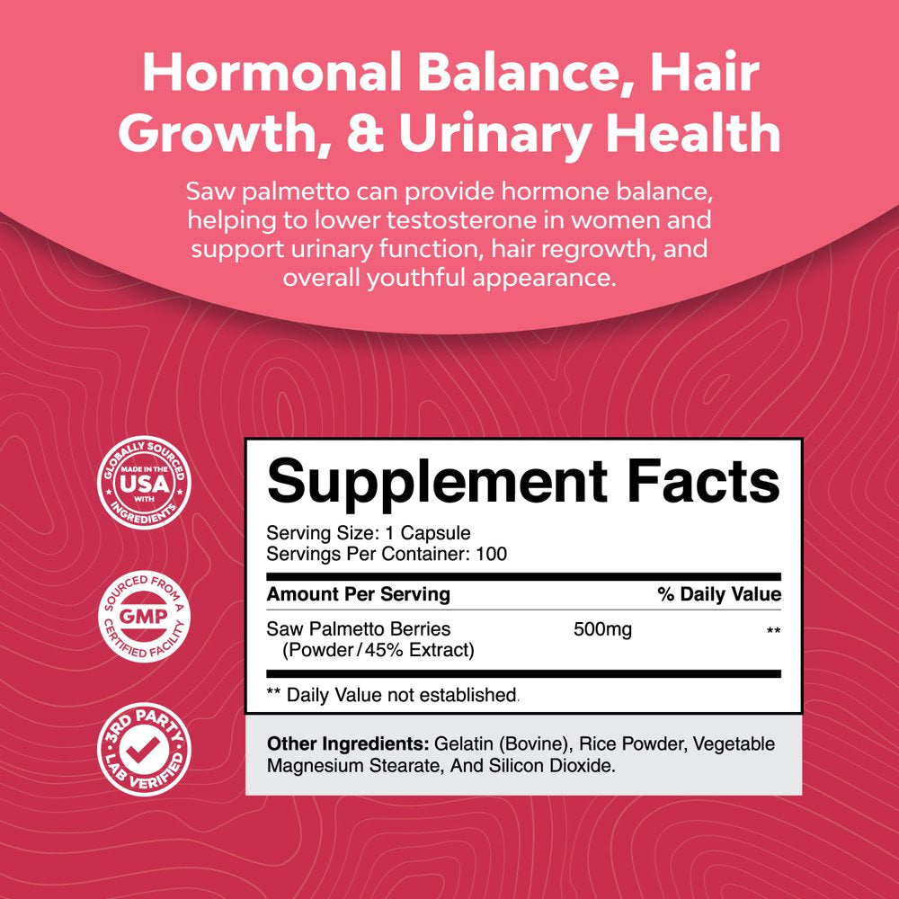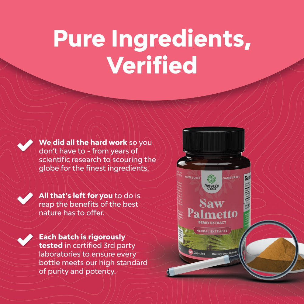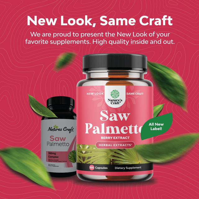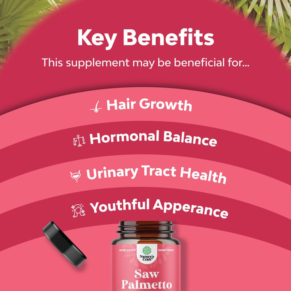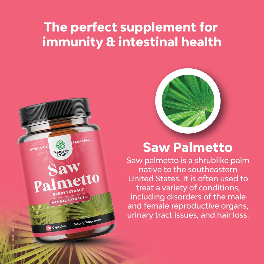 Saw Palmetto 500Mg per Serving for Women 100Ct Capsules - Nature'S Craft Pure Saw Palmetto Extract for Hair Loss Support