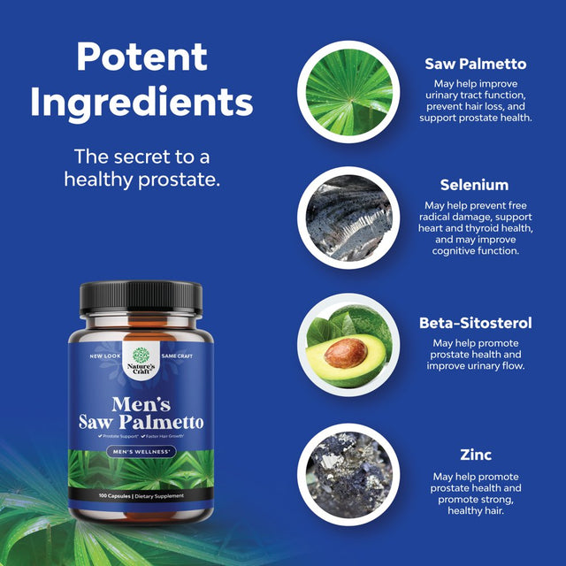 Saw Palmetto for Men with Beta Sitosterol - Saw Palmetto Extract Prostate Health Supplement for Men for Bladder Control and Prostate Support - Thickening Hair Supplement for Hair Growth for Men