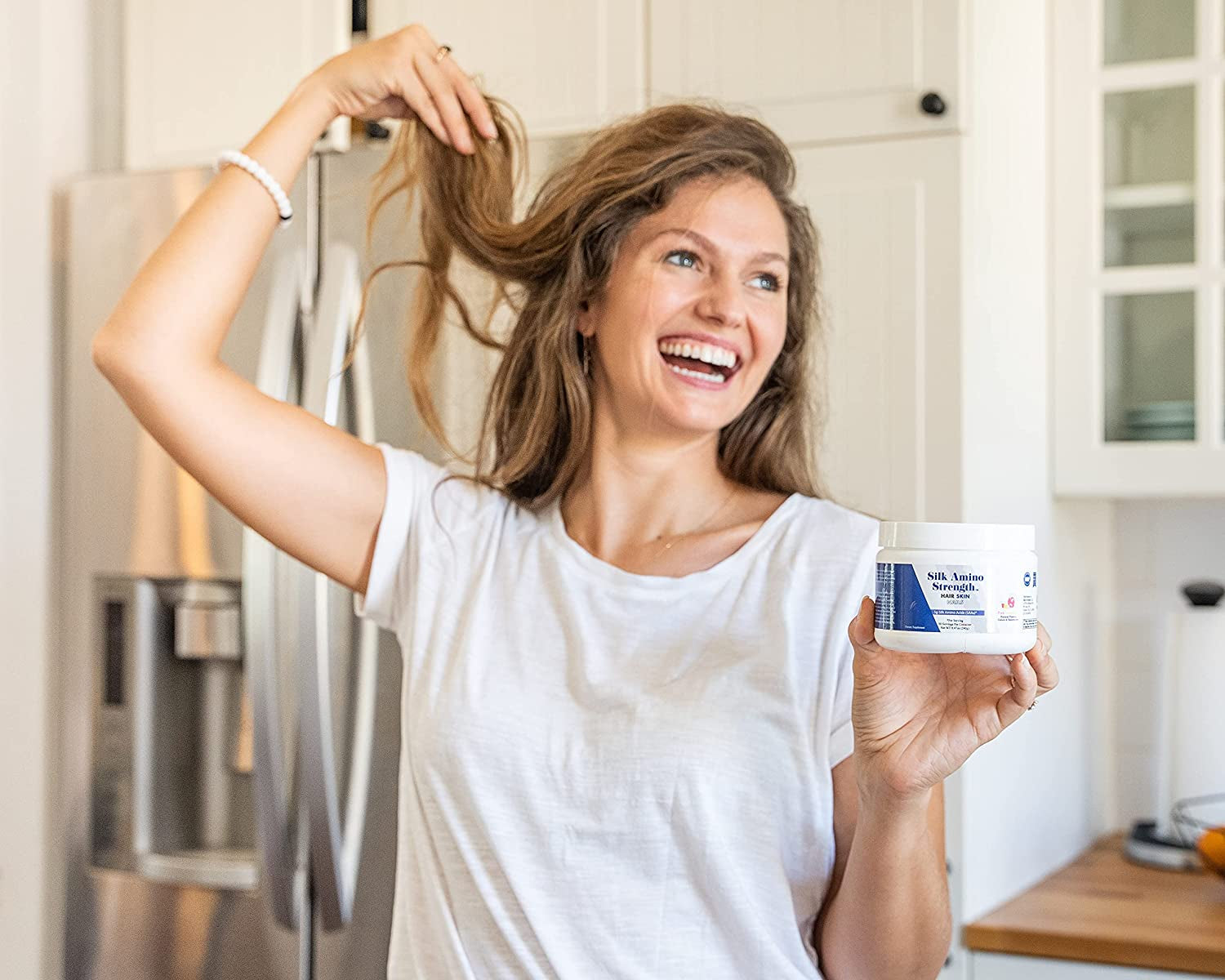 - Silk Amino Strength is a naturally flavored combination of silk amino acids (SAAs) and glutamine. SAAs may promote collagen production and bond with the keratin found in hair, skin, and nails. This allows SAAs to support the strength and growth of hair. SAAs may also hydrate skin, support nail growth, and assist in muscle building. The glutamine present can promote immune system health and support muscle recovery after exercise.*^